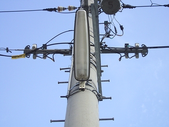 とは言いましても、いつものように町内の電気屋sanで蛍光管とグロー球を1セット求め、中電カスタマーセンターに連絡し交換作業を依頼するのみなんですけどネ(^.-)☆