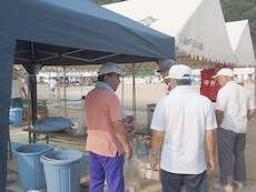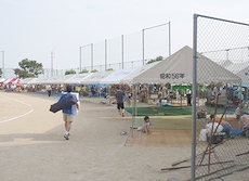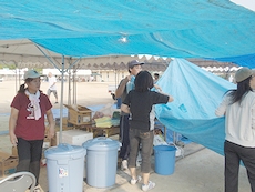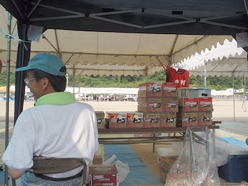 二つテントを張りまして、その下にパイプ椅子等の備品を収納。