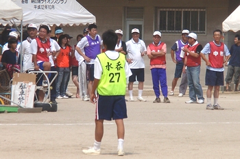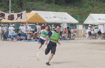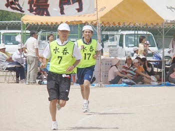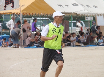 この学区民運動会の「1,500b」種目には毎回登場されますから、カメラを片手に応援のGONsan。