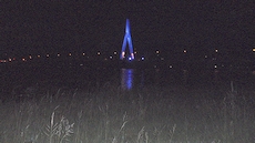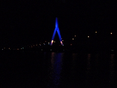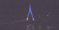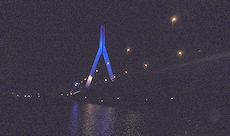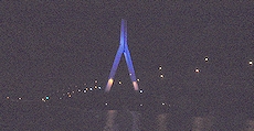 それはともかく我が家に帰りまして一息入れ、芦田川大橋の主塔に再度眼を向けますと、う〜ん、なんと青色にライトアップ。