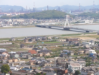 芦田川河川敷に降り護岸を芦田川大橋方向に歩いておりますと、お一人…そしてまたお一人…と主塔にカメラを向けておられます方が(^.-)☆