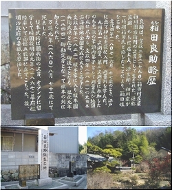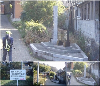 「箱田良助」sanと「榎本武揚」san…お二人とも凄い人でしたのでしょうねぇ〜■福山城特別展、1万人を突破--- 2009/11/19 中国新聞 ---福山市神辺町出身で、江戸時代に伊能忠敬の一番弟子として日本初の全国地図作成に携わった箱田良助と、その次男である榎本武揚の業績を紹介する特別展が同市丸之内の福山城博物館で開かれている。18日に入館者が1万人を突破した。1万人目となったのは、娘2人と訪れた福山市横尾町の主婦原美智子さん(35)。羽田皓市長から記念品を受け取り、「地元出身者が伊能図作成にかかわっていたとは知らなかった。当時の地図がとても細かいことに驚いた」と話していた。特別展は、中国地方の伊能図の複製や江戸時代の測量道具、箱田良助が家族に送った手紙など約150点を並べる。幕臣だった榎本武揚が実際に着用した軍服も飾っている。23日まで。…と、こんな記事でありましたけど、何年か前にGONsanも「箱田良助」sanの生誕の地(神辺町)を訪れました事がありました。画像を捜してみましたら、うん、うん、確かにありましたネ(^.-)☆