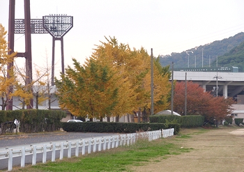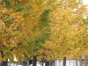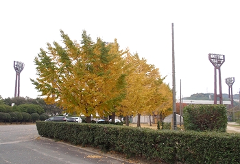 テニスコート横を通過し市営プール近くに来ますと、紅葉のイチョウが仲々キレイ(^_^)v