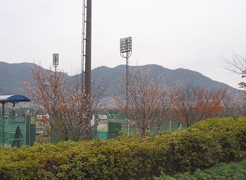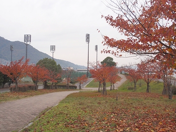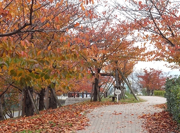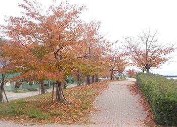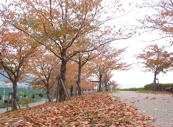 テニスコート横のウォーキングロード…紅葉でそれなりにイィ景観です(^.-)☆