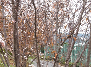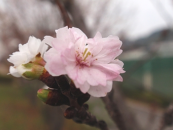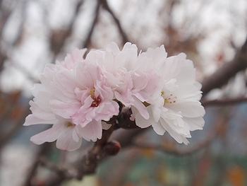 春の花のほうが少し大きいらしい。冬に「季節はずれに桜が咲いてるな」というときは、この十月桜であることが多い。