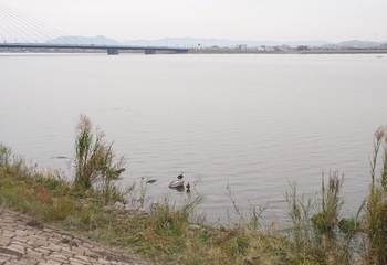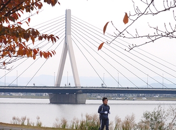 自転車の練習…福山市の市花『ばら』…芦田川大橋付近の見慣れた景観です(^.-)☆
