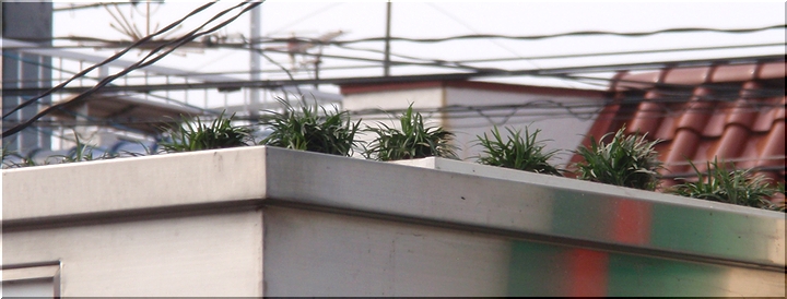 何をしておられるのだろぅ?…と、いぶかりながらまず処理を済ませ、そしてジックリ見てみますと、ふ〜ん、こんな所にも“屋上緑化”でありましたか(^.-)☆