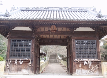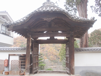 一間一戸の四脚向唐門で、総けやき造です。正面は巾3.3mあり、屋根は本瓦葺です。