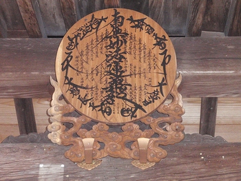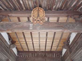 再建年代は元禄頃(1688〜1703)で、正面桟唐戸は前身の建物が使用されたと思われ、鏡板の桐文薄肉彫りはすばらしく、珍しいものです。