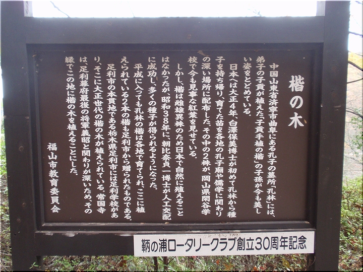 平成に入っても孔林の楷は各地で育てられ、ここに植えられている2本の楷も足利市から贈られたものである。