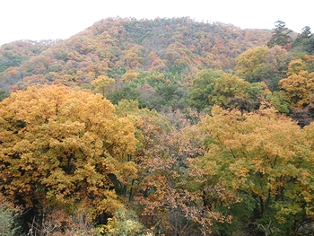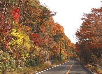 山の上の尾根を走りますグリーンラインですから、周辺はどこも皆、紅葉が実に鮮やか。