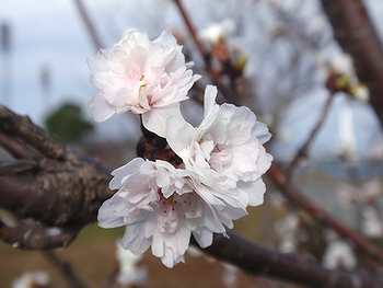 ご覧の通り寂しい咲き方ですけど、このジュウガツザクラは木全体の観賞よりも、一つ一つの花びらの観賞の方が適していますようですネ。