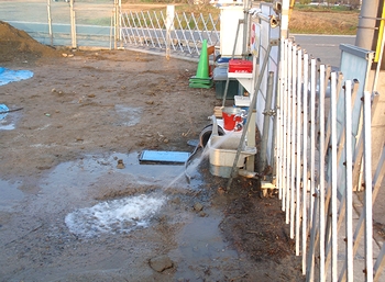 基礎部分に溜まりました水の量から勘案しますと、昨日からズッとこんな状態でしたのでしょうねぇ〜部外者のGONsanではありますけど、この状態に陥りました原因は是非とも知りたいところですネ。それにしまても、この膨大な水道水の使用料はどんな形で精算をされますのでしょうねぇ〜
