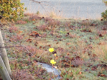 後はサッサと芦田川の土手・河川敷へ…と言いたいところですけど、ここを通りますと、やっぱりジュウガツザクラにと眼が向かいます(^.-)☆が、その前に、二輪の黄色い花が眼に入りましてパチリ(^_^)v