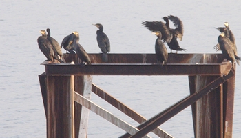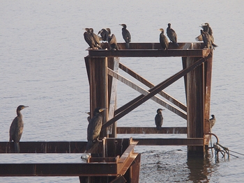一見、暖かそうな天候で、ノンビリと日向ぼっこ…と言いたいところですけど、結構冷たい気温のこの日。このカワウの皆さんは何を見つめているのでしょうねぇ〜