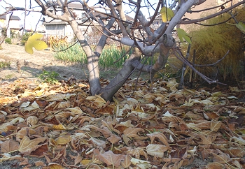 イチジクのこのハッパ…早く片付けませんと風に吹かれて辺り一面に…