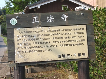 正法寺は、1458年(長禄2年)小西城主原行朝が、その居館に建てた阿弥陀堂を法華堂に改めたのが始まりと言い、妙光院日意の開山と伝えられる。七世日悟の代の1582年(天正10年)、日祐を招いて寺内に小西檀林を開き、学僧を育成し、明治の初めまで学問寺として栄えた。近世の朱印は20石。