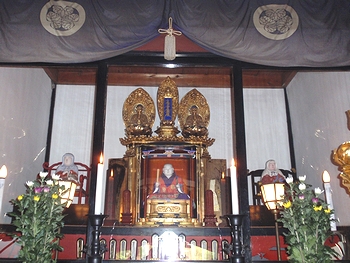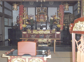 将軍の鷹狩の宿舎東金御殿にあった物を、四代将軍徳川家綱が寄贈し、1671年(寛文11年)に移築した物で、玄関と屋根に葵の紋がある本堂(講堂)。