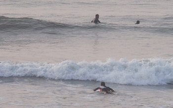 ところで、早朝からサーフィンを楽しんでおられます若者の皆さん…“おっ、上手い上手い(^_^)v”とカメラを向けますとコテンですから(^-^)