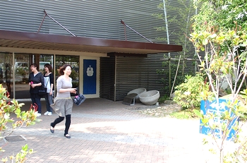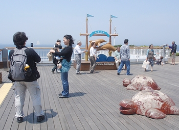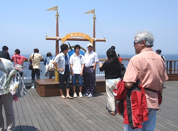 そんなところに、ご覧の女性3名が“かまぼこ博物館”の入口前で記念撮影となりました。