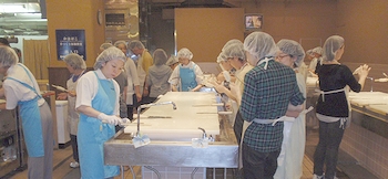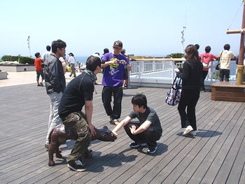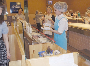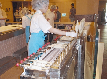 この方々は、皆さん観光客なのでしょうか…先生のご指導の元、思い思いに蒲鉾作りに精を出しておられました(^_^)v
