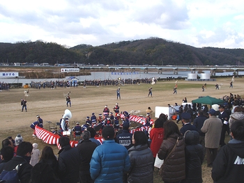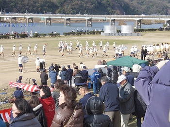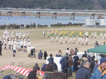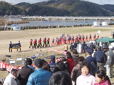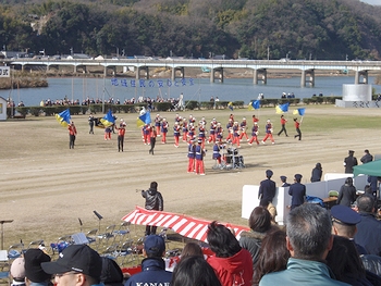 光小学校のグランドは出初め式見物者の駐車場となりますけど、このためグランド片隅での練習を余儀なくされておりました。