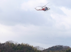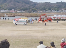 公開訓練のプログラムは進行して行きまして、ヤッと、チビッコ達にはお待ちかねの広島県防災航空隊のヘリ登場です(^.-)☆