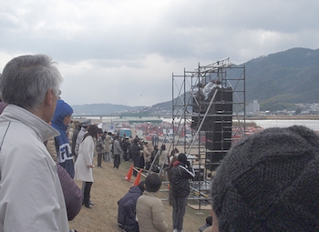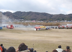 いつもは、もぅ少し川下方向の位置で見物しますのですけど、今回は少し中央寄りでありました。