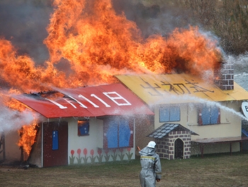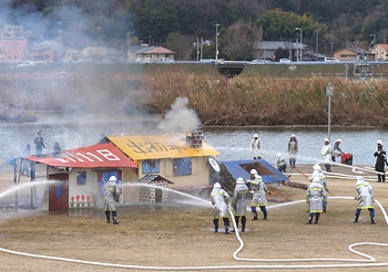 陸と空からの救助・消火活動訓練も予定通りで、いよいよ一斉放水でフィナーレです。