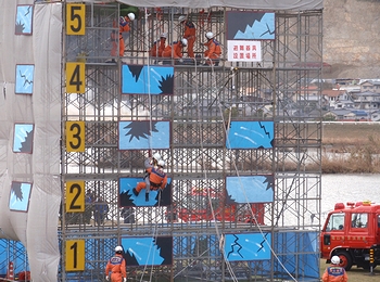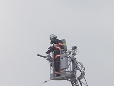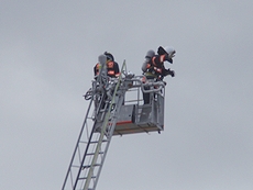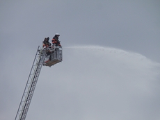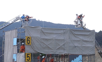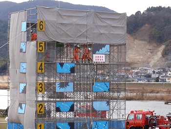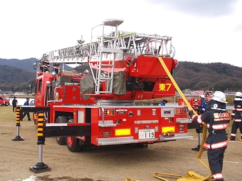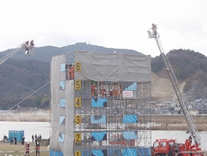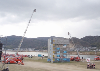 福山市と三原市で11日、消防出初め式があった。消防署員や消防団員らが日ごろの訓練の成果を披露し、集まった市民に火の用心を呼び掛けた。福山市草戸町の芦田川河川敷であった出初め式には約2,100人が参加。団員は昔ながらのはしご乗りを披露した。8人が高さ約7メートルまで登り、両手を広げたり逆さになったりとポーズを次々に決めると、集まった市民から大きな拍手が起こった。