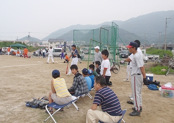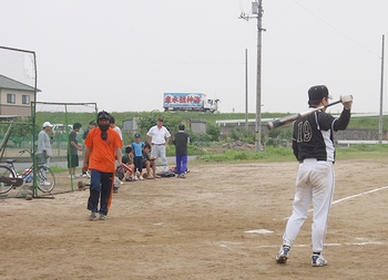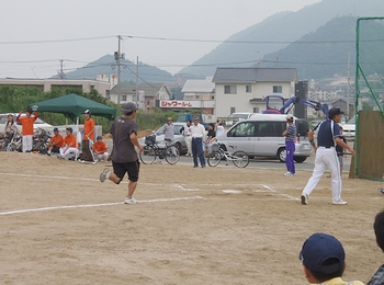 これは、水呑学区体育会主催の軟式野球大会の一コマなんです(^.-)☆