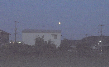 ここから先は車が多いですから、GONsanと一緒に歩きませんと危ないと言う事が分かっていますのかも…我が家にと戻ってきまして南方の空に眼を向けますと、まん丸いキレイなお月様。