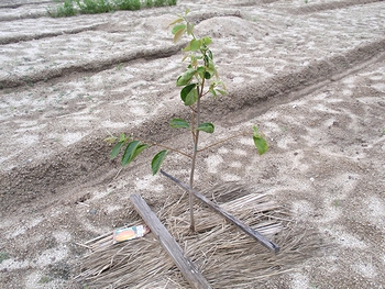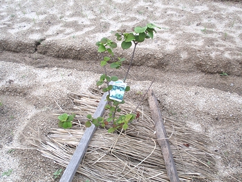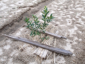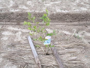 結局、あまり手の掛かりません果実を植える事にしまして、ゆず・きんかん・ブルーベリー・オオデマリ、そして柿は何本か有りましても渋柿がありませんからこの渋柿を植える事となりました。挿入の画像が植え込み後3週間ばかり経ましてから撮りましたものなんです(^.-)☆