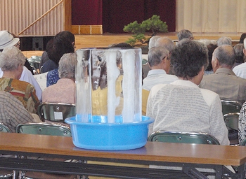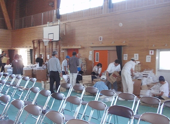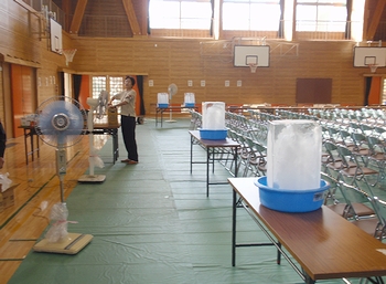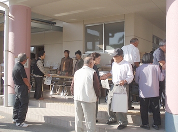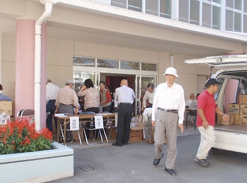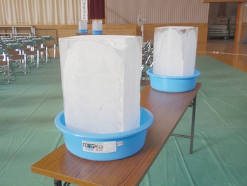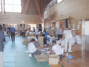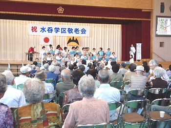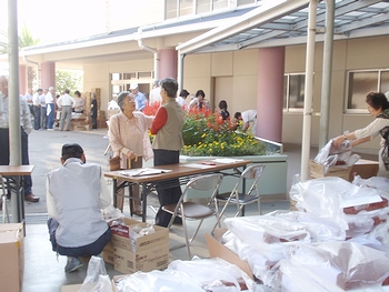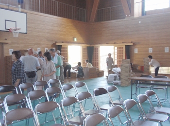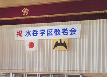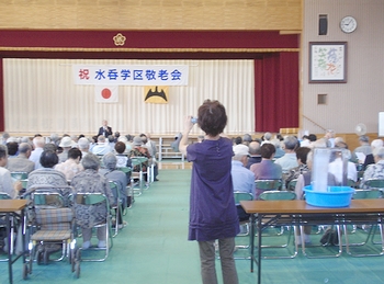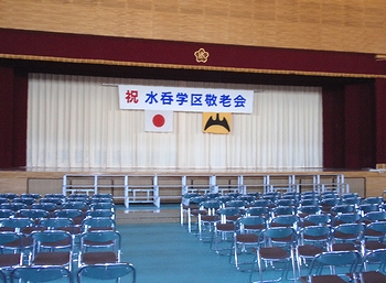 明日・9/22(月)が敬老会と言う事で、前日の今日はP.M.1:30よりその準備で水呑小学校体育館行きとなりました(^.-)☆毎回、他の町内会の皆様は準備の取りかかりが早いものですから、少し早めのP.M.1:15に出かけますと、う〜ん、やっぱり早いですねぇ〜