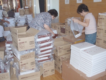 既に、明日、敬老会出席者にお渡しします記念品の仕分けをしておられましたから(^-^)で、到着しますとスグにGONsanも開始。