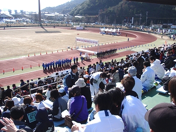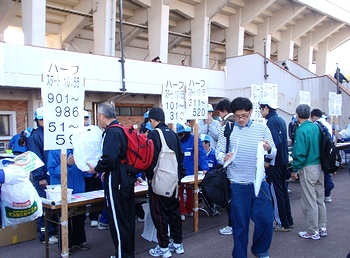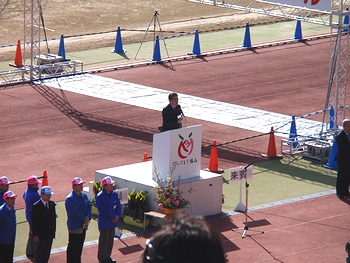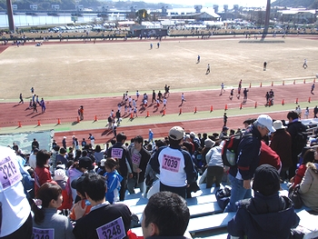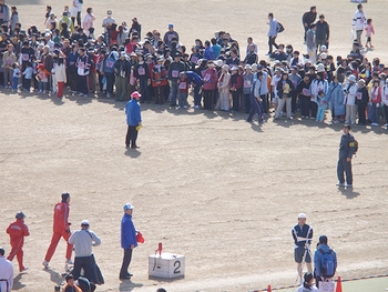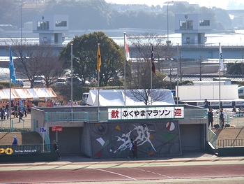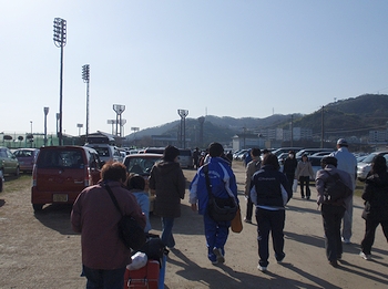 昨年はゴンchanと共に来てましたけど、今回は置いてきましたようでした(^.-)☆定刻のA.M.9:00から開会式が始まりましたけど、ハーフの部のスタートでありますA.M.10:55まではタップリと時間がありますから、この待ち時間は結構長く感じられてしまいましたネ。この日の様子は、中国新聞sanがこんな記事で伝えておりました。■過去最高の5,972人がいい汗--- 2009/03/16 中国新聞 ---第28回ふくやまマラソンが15日、福山市水呑町の市竹ケ端運動公園を発着点に開かれた。広島県内を中心に過去最高の5,972人が出場し、芦田川を望むコースで元気よく春風を切った。市や市体育協会、中国新聞備後本社などでつくる実行委の主催。日本陸連公認のハーフマラソンと10キロをはじめ、5キロや3キロ、家族で走る2.5キロ、のんびりと歩く4キロに、3―85歳の参加者が次々と挑み、思い出に残る汗を流した。…と、こんな記事でありましたけど、ふん、ふん、結構参加者はおられましたようですネ(^.-)☆