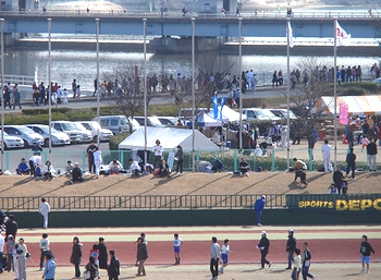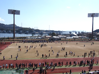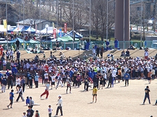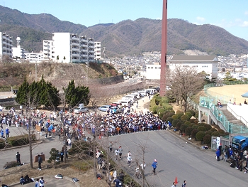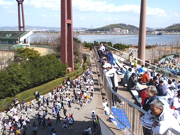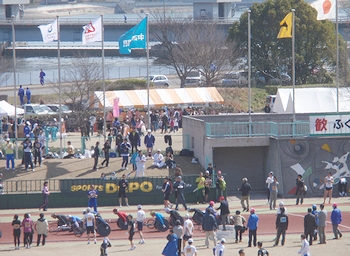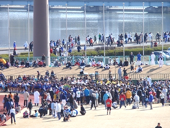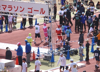 私は家族連れで来ておりましたのでゴール後はとなりの広場へ、家族は食事、私は持参の酒で一杯。12時50分ごろ、そろそろかなと思いつつひとりふらふらとゴール地点へ移動、12時55分ごろより15分間ほどお待ちしておりました。