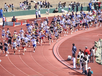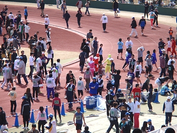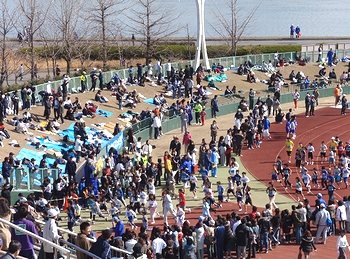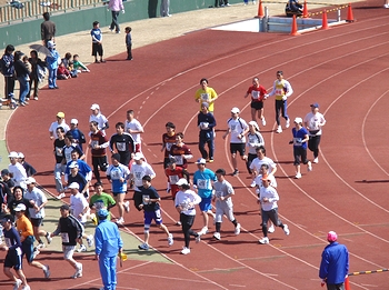 が、姿は見えず・・さてはすでにゴールされているのかもと結果掲示板を確認に行きましたが、掲示済みの1時間52分台までにはお名前が見当たらず、はてさて・・ごあいさつしたかったのですが、家族も待っておりましたので、今回は残念ながら断念いたしました。またの機会の楽しみにということで。おつかれさまでした。