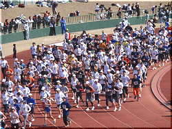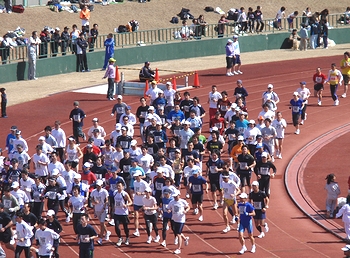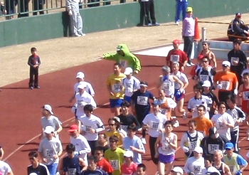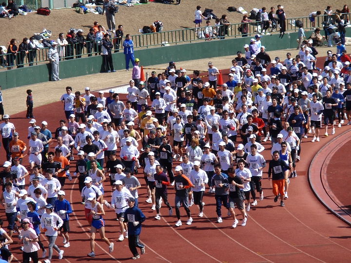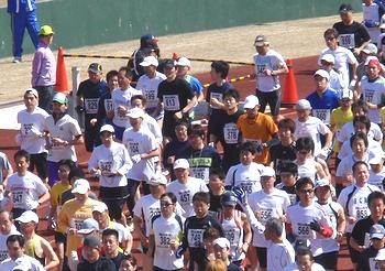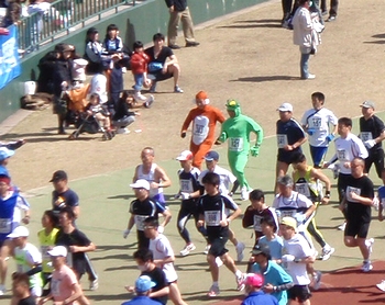 GONsan、スタート集団から数メートル後方に離れて最後尾を狙っていらっしゃるようにお見受けしました。ですが後ろから眺めてますと、スタート発砲後、少し間をおいてGONsanが走り出された後も、さらに数メートル後方でストレッチ体操をされつつ、ひと息おいてスタートされているツワモノの方がお一人いらっしゃいました。