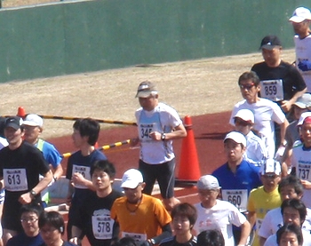 「345」のゼッケンaAハーフスタートの際に10kmスタート控えより後姿を拝見いたしました。ごあいさつしたいなと思いつつも、こちらもスタンバイ状態、心の中で「GONsaーn」と手を振っておりました。