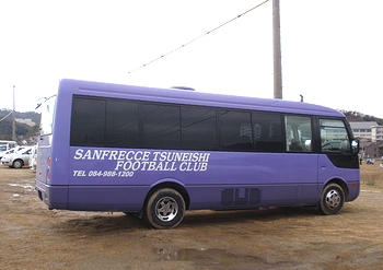 何の大会か分かりませんけど、サッカーの熱戦の真っ最中。ゴンchanの散歩ルートのど真ん中には「サンフレッチェ常石フットボールクラブ」のマイクロバスが止まっておりました。