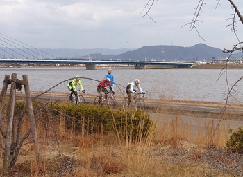 川面にはボートを楽しんでおられます方もいませんし…河川敷にも仲間らしき方の姿は見えません。じゃぁ、自転車を楽しんでおられます方々なんでしょうか?……と、ここまで綴って来ましたけど、う〜ん、もぅいけません。眠さもピーク。