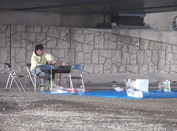パイプ椅子の数…そしてビニールシート…この様子から5〜6名のグループのように感じられますけど、それにしましても仲間達は何処に…