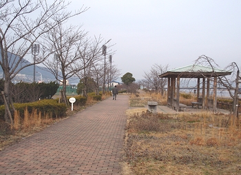 月曜日でもあり、あまりの冷たさに、散歩しておられます方は何組かありましたけど、さすがにジョギングしておられます方はおられませんでGONsanのみ(^-^)芦田川大橋から河口堰方向には追い風でしたから跳ぶように走れましたけど、その逆は久々に一歩進んで二歩下がる状態です。