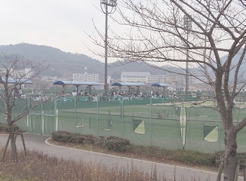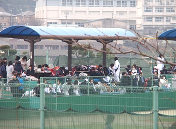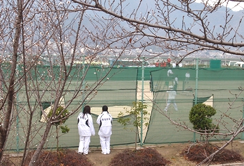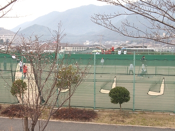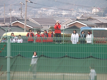 きっと、「こらぁ、ご主人様が写真を撮っているのだからジャマするなぁ〜」とでも言ってくれていますのかも…この日のテニスコートは女性ばかりの大会のようでしたけど、応援しています皆さんは寒そうでしたネ。