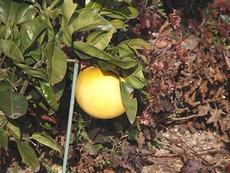 お寺の山門近くの畑に眼を向けまして眼に入りましたのが、このでっかいミカン(^.-)☆