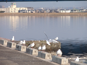芦田川河岸のアチコチで、こんなカモメの皆さんを見掛けます(^.-)☆
