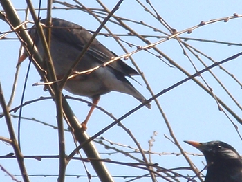 このムクドリの大群は、決まって夕方戻って来ますから分かりませんでしたけど、ムクドリのクチバシと足はオレンジ色でしたのですねぇ〜