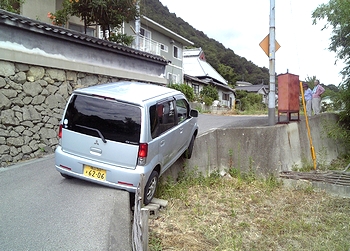 とにかく普通車一台がヤッと通れます程度の道幅ですから、対向車でも来ようものならもぅ大変ですよ。