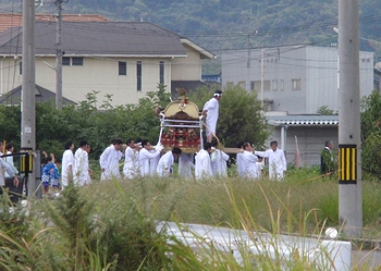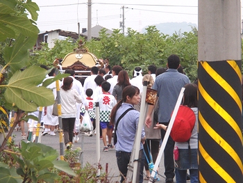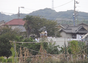 で、カメラを手に我が家前を通過します際の御神輿を撮ろうと待ち構えていたのですけど、9/5に父を亡くし、葬儀等でお世話になりました皆様にお礼の挨拶をしています内に御神輿は通過。